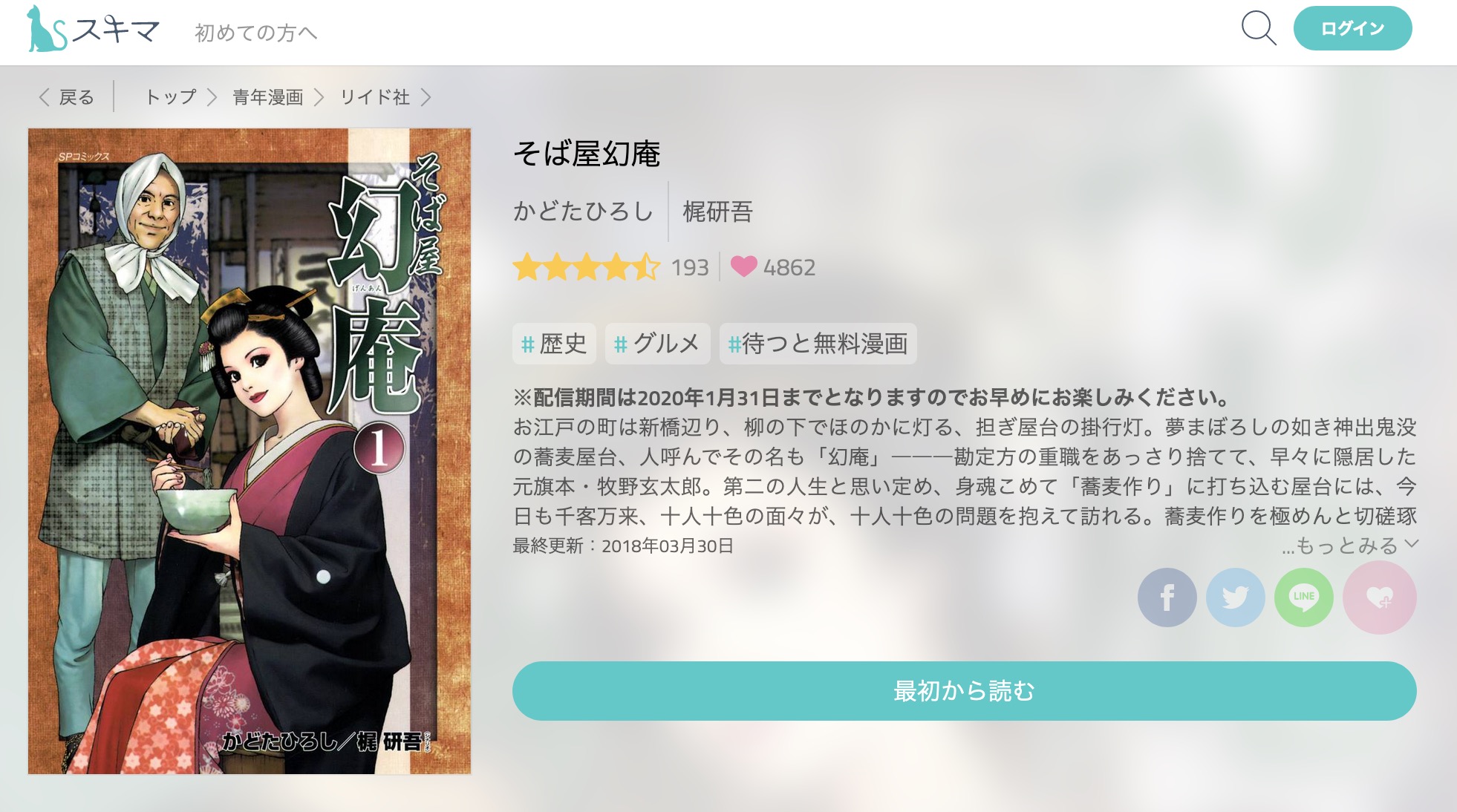 そば屋幻庵 無料 試し読みも 漫画 電子書籍のソク読み Sobayagena 001