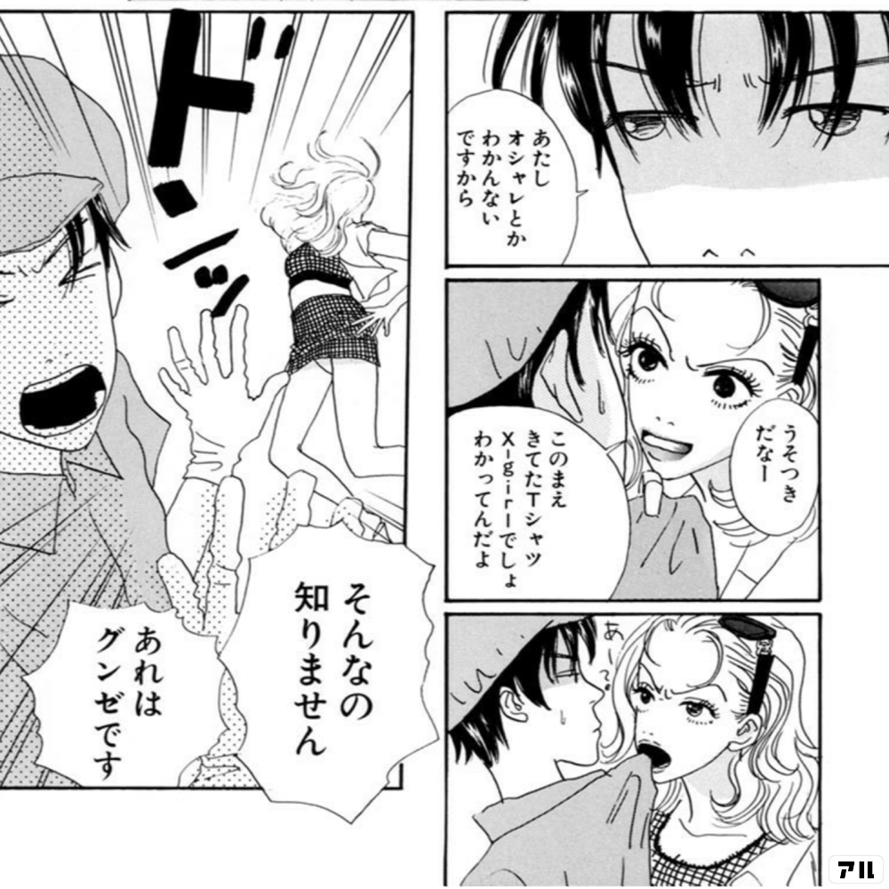 あたしオシャレとかわかんないですから うそつきだなー このまえきてたtシャツx girlでしょ わかってんだよ そんなの知りません あれはグンゼです カメレオン アーミー アル